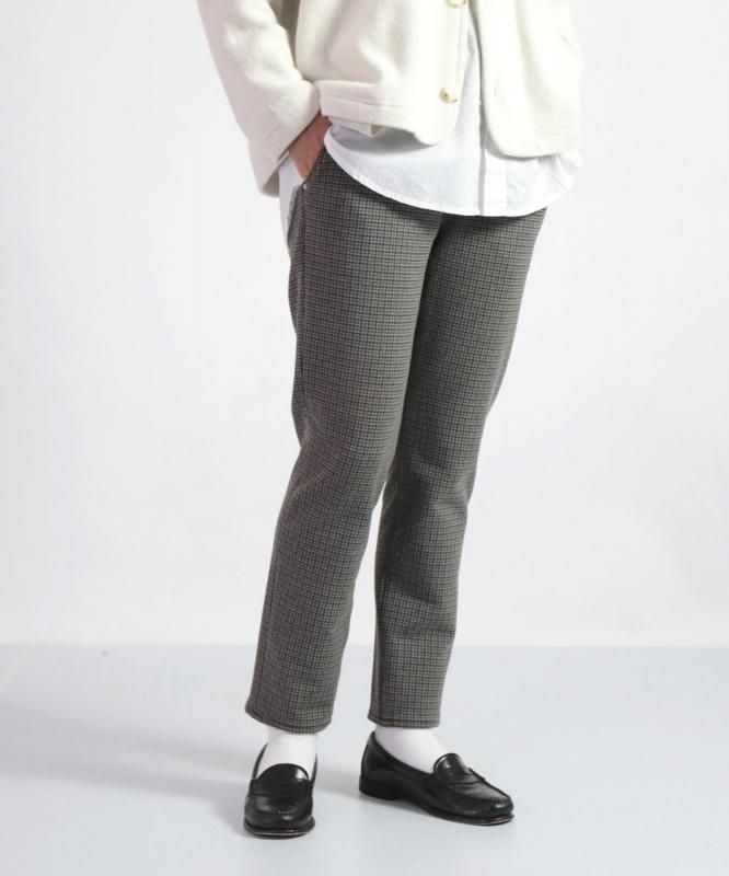 やや股上にゆとりをもたせ、ウエストとわたりをほどよく細く、裾に向かってかけてきれいなテーパードラインを形成しているアンクル丈のスリムシルエット。