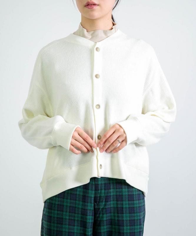 ふんわりと柔らかく肌馴染みの良いリブ素材を使用したカーディガン。