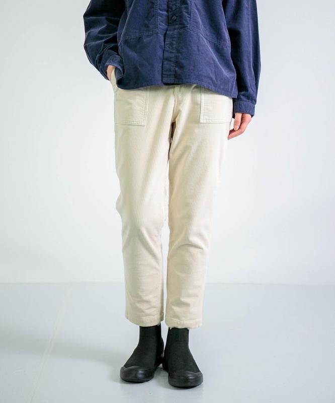 股下から裾に向かって細くなるテーパードが全体のシルエットをすっきりと見せてくれます。膝から裾に向かってテーパードがかかったアンクル丈は、足元がきれいに纏まりあらゆるトップスと好相性。