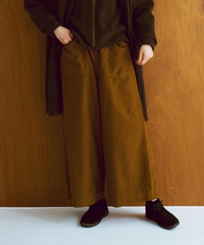 ほどよく厚みのある生地のおかげでワイドなシルエットが強調され、カジュアルすぎないパンツに仕上がっています。