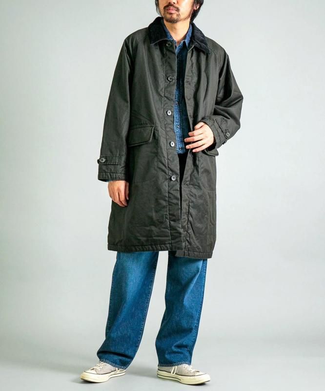 襟はチンストラップ付きのコーデュロイ使いでヘビーデューティーな雰囲気に仕上げました。