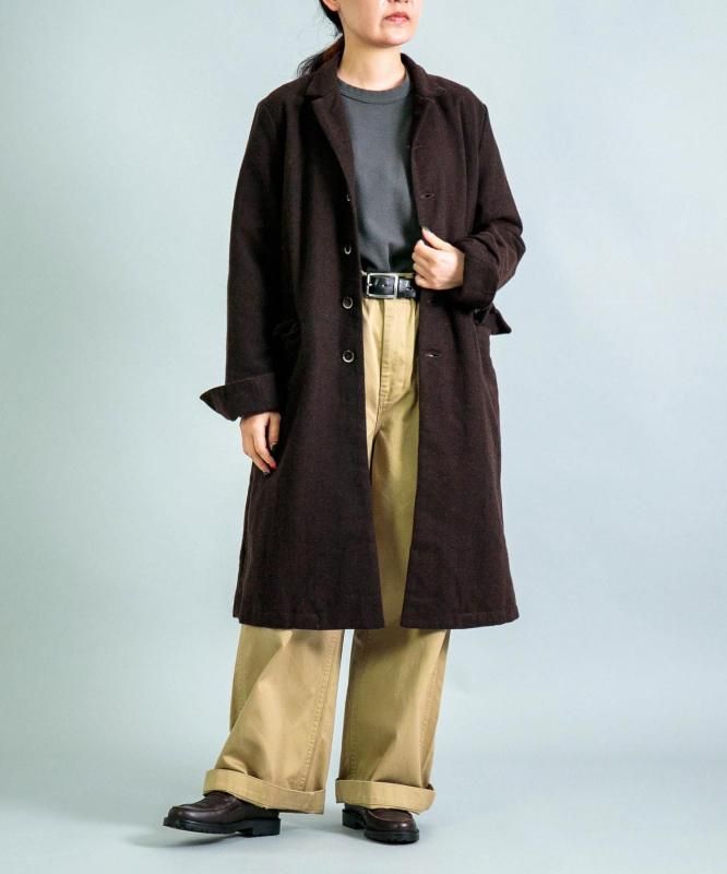 クラシカルな表情のブラッシュドヘリンボーン素材を使用したレギュラーフィットのワークコート。